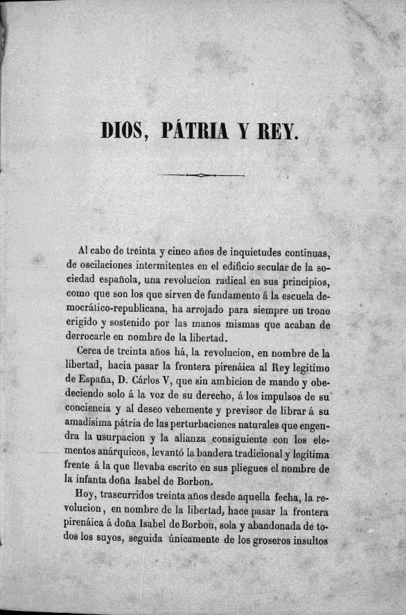 | Título: | Dios, patria y rey. |