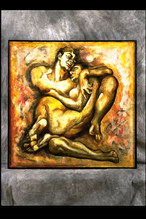 Escena basada en el invierno de Néstor. Dos figuras de personas desnudas recostadas.