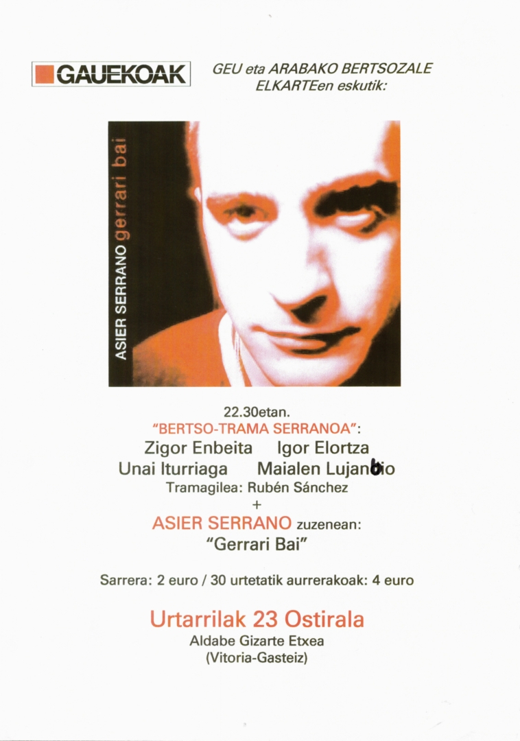 | Title: | GEU eta Arabako Bertsozale Elkarteen eskutik [Material gráfico] : Asier Serrano : Gerrari bai |